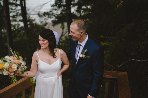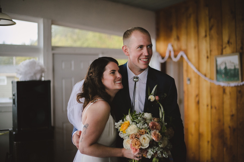 Lauren and Tyler both grew up in Alaska, and even went to prom together in high school, before reconnecting and falling in love in Portland. They wanted to capture the essence of what they love about Alaska and the Pacific Northwest that they now call home - the ocean, trees, a wild landscape, and of course, oysters! Their ceremony took place on the balcony of a beach rental overlooking the Hood Canal. We took portraits in the stormy rain, which they embraced like true weathered northwesterners.